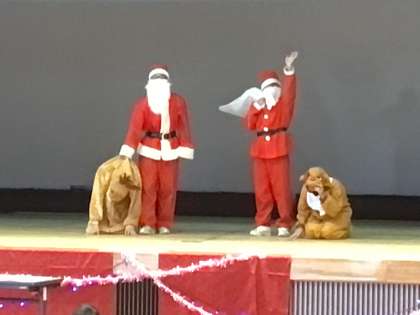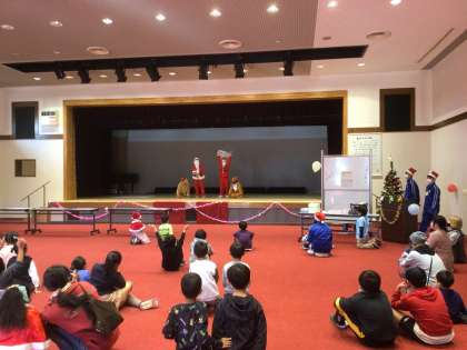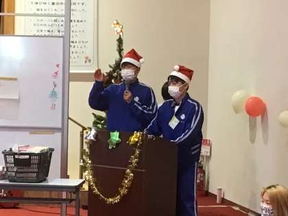 はじめに、いすとりゲームをして場の雰囲気が和んでくると、会場にサンタクロースがやってきました!