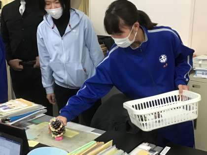 1・2学級の生徒が、職員室に来て、先生方にクリスマスツリーをプレゼントしてくれました。