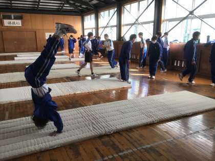 学習用タブレットで動画を撮ってもらい、自分でチェックしながら練習する生徒もいました。