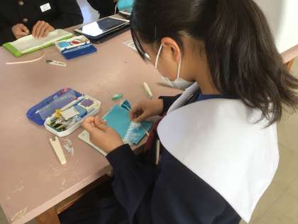 すでに完成せせた生徒は、飾りつけに取り組んでいました。