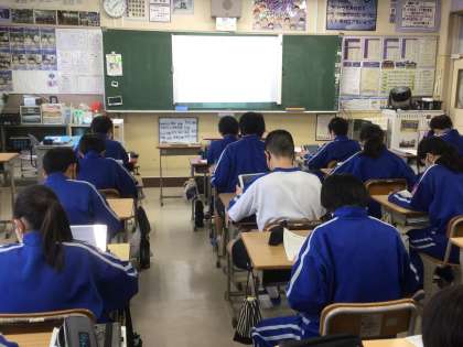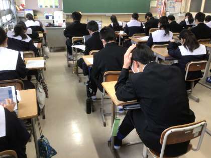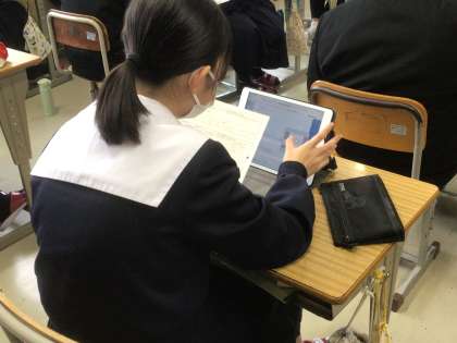 来年度に計画している職場体験学習の体験希望先を学習用タブレットのFormsに入力していました。