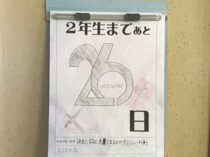 1年生の教室で見かけました。 残り少なくなってきましたね。