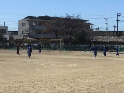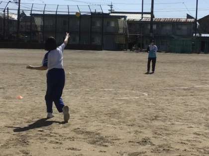 キャッチボールをして、スローイングとキャッチングの練習をしていました。