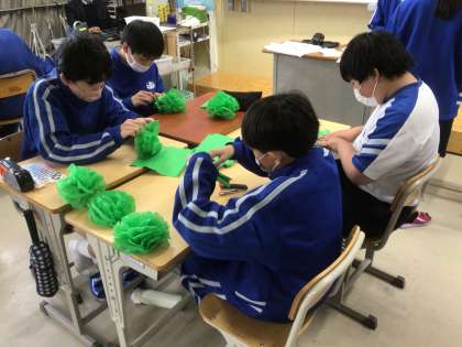 午後、1年生と2年生が合同で送る会の準備をしていました。