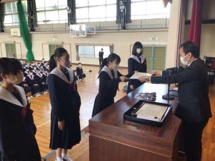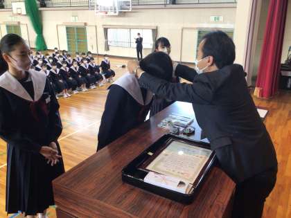 弓道部の県大会優勝、全国出場に対して、豊田市教育委員会から表彰されました。