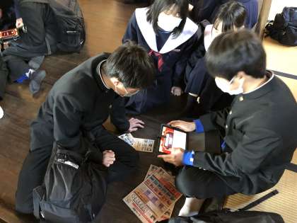 タブレット端末を借りて、チーム名を打ち込んだら、リアル人生ゲームスタートです!さて、優勝はどのチームになるでしょうか?頑張ってください!