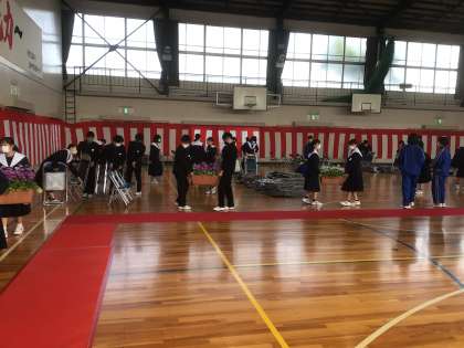 卒業式会場から、「体育館」へ戻っていきますね。