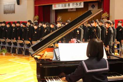 送別の歌を全校生徒が合唱しました。