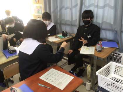 じゃんけんをして、英語で質問をし合っていました。