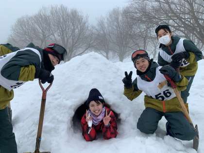 雪を集め完成!少し小さめですが、なかなかのかまくらです。