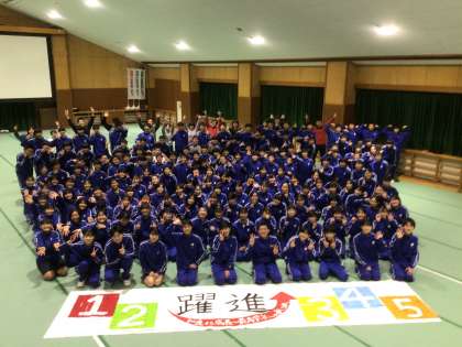 最後は全員で! 2枚目の写真は、横断幕作りでがんばった学級書記のみなさんです。