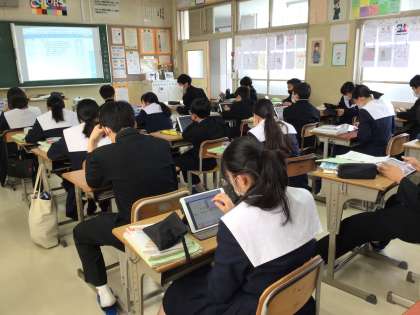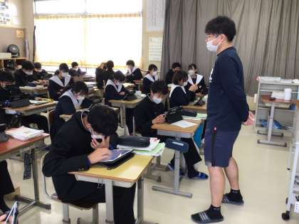 言える、言えないの理由を考え、学習用タブレットのノートに記入していました。