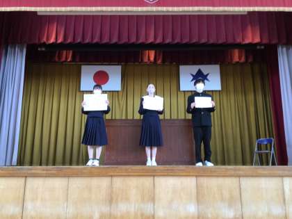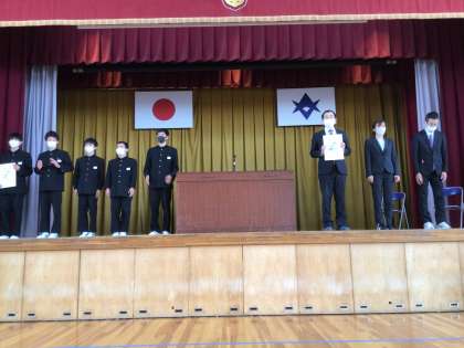 陸上部及び教員駅伝チームの駅伝の表彰です。