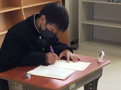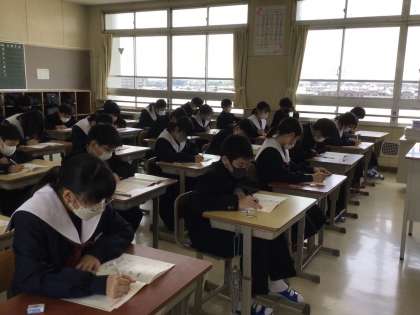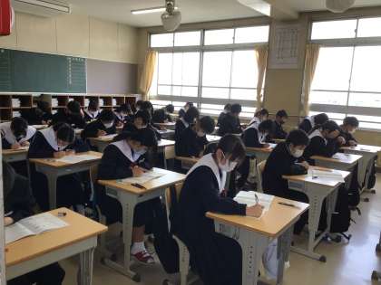 1年生は、学力検査に取り組んでいました。