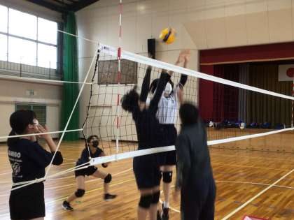 バスケットボール、女子バレー、情報メディア部です。