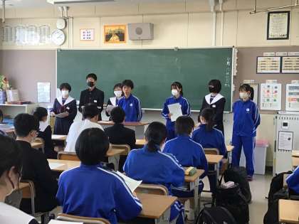 生徒会役員から、生徒会活動について各学級の代議員に説明がありました。