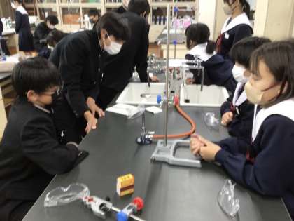 酸化銀を熱するとどうなるのかを確かめていました。