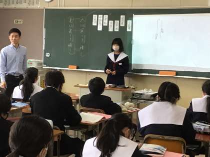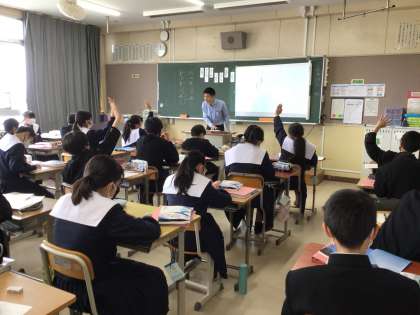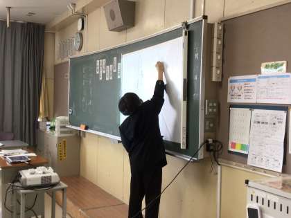 どこにその表現があるのか、黒板に映し出された文章に書き込んでいました。