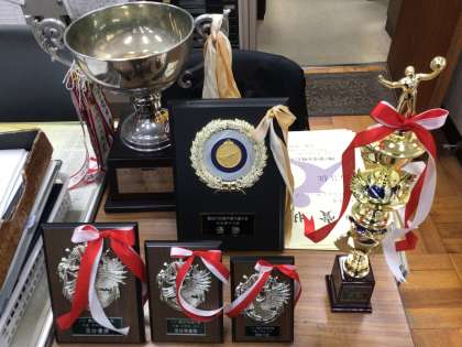 弓道部男子団体が優勝、女子団体が準優勝と3位、女子個人優勝と大健闘でした。