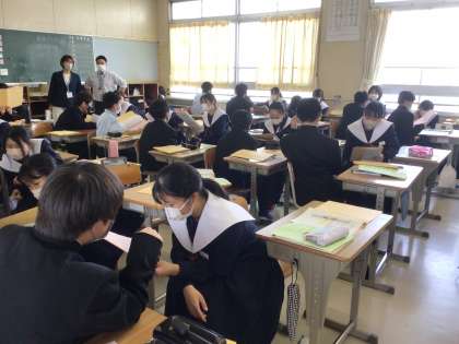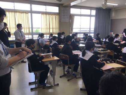 高嶺小、畝部小から校長先生や6年生の時の担任の先生が来校しました。