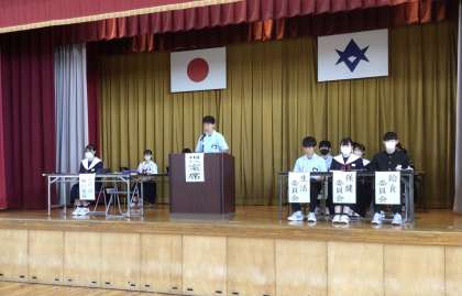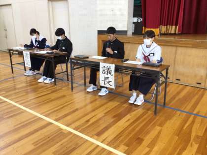 出席人数に確認、司会、議長、進行全てを生徒の手で行います。