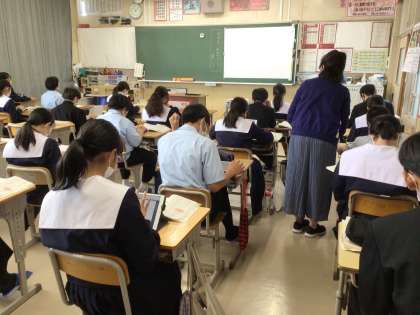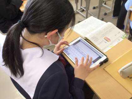 自分流の枕草子を考え、学習用タブレットに書き込んでいました。
