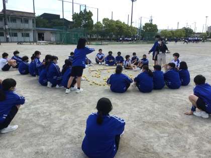 1・2年生はグラウンドで種目練習をしました。