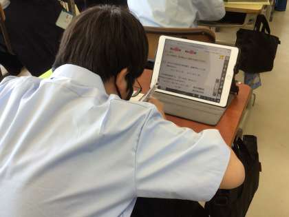 学習用タブレットには、デジタル教科書が映し出されていました。