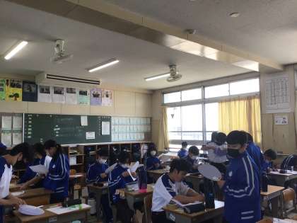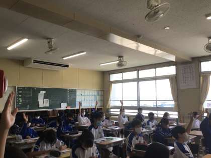 気温が上がり、教室内も暑くなっていたので、扇風機を回して一時的にエアコンも入れました。