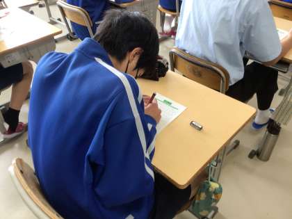 学級の時間に体育祭の振り返りをしているクラスがありました。