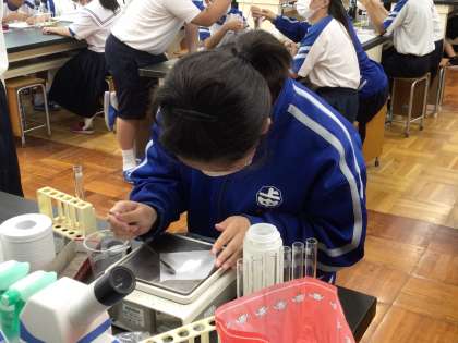 薬品を正しく測って試験管に入れます。