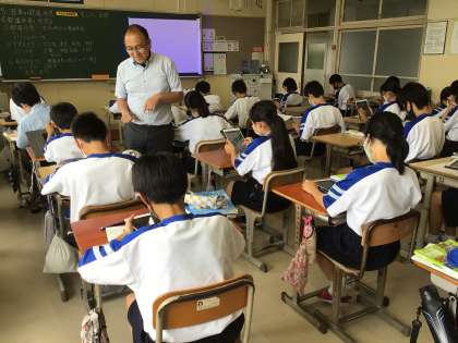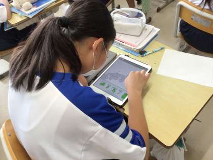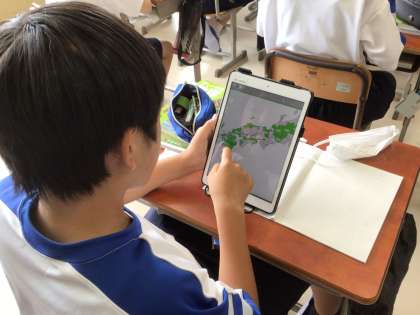 県名、形、位置などを学習用タブレットにあるアプリを使って確かめていました。