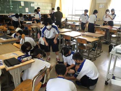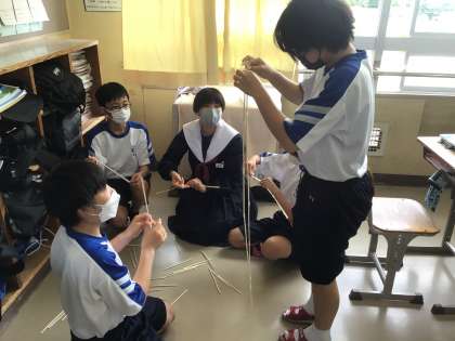 技術の時間、今日は6組がタワー作りに挑戦していました。