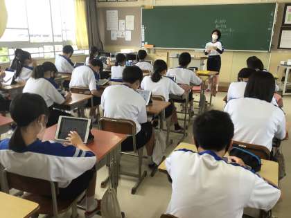 生徒会だよりがTeamsにアップされているとのことで、すぐに学習用タブレットを取り出して読んでいました。