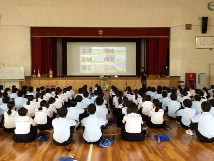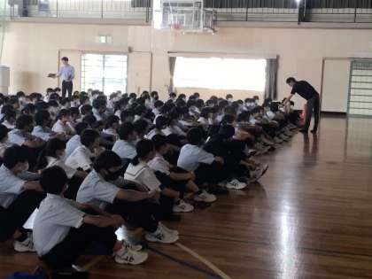 テストが終わり、3時間目に3年生は学年集会を行いました。