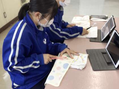 しみ抜きができたら、学習用タブレットで写真に撮ってまとめ、ビフォーアフターを比べました。