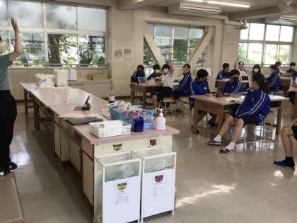 今日は4組が醤油のしみ抜きに挑戦していました。