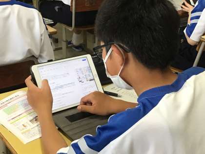 出てきた用語について、ちょっと難しいから調べてみようかとの声かけに、すぐに学習用タブレットを出して調べていました。