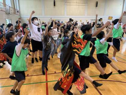 おいでん踊りにも飛び入り参加。たくさんの子が踊りまくりで、楽しみました。