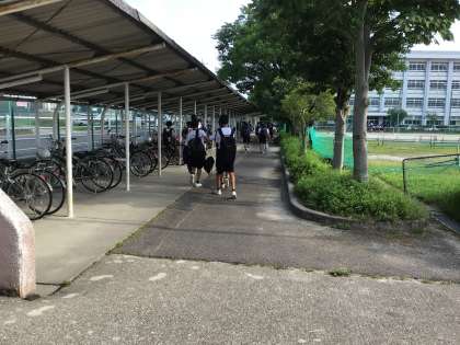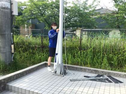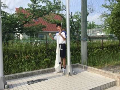 生徒会の生徒が、国旗掲揚塔に旗をつけてくれていました。
