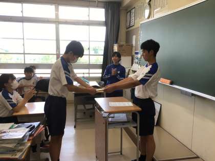 学級の中でみんなのために働いている生徒を神と讃えて表彰しました。