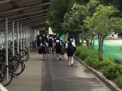 登校後にグラウンド整備をしていた野球部の生徒が戻ってきました。