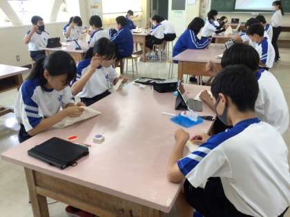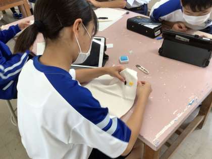 わかりにくいところは、学習用タブレットで動画を見て確認します。