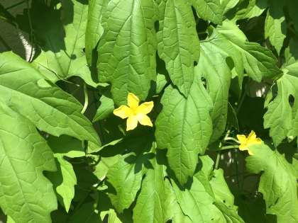 花が咲き、ちっちゃなゴーヤができかけていました。