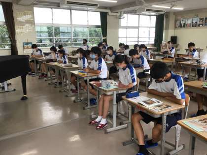 第2部では主題がいろいろな高さで示されているとのことで、教科書を見ながら聞き分けていました。