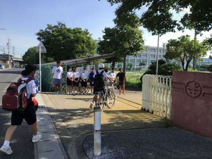 さて、今日は3年生の級長会のみなさんが登校の様子を見ながらあいさつ運動をしてくれました。