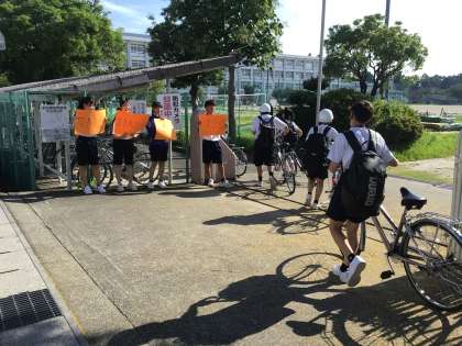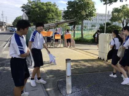 今日も3年生の級長会の生徒が門に立ってくれました。