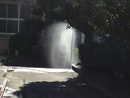 昇降口へ向かうところに、ところどころミストが用意されていました。