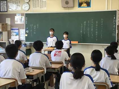 1年生の立候補者が3年生の教室を回っていました。
