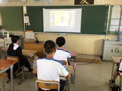 集会後は生徒指導主事のお話を聞きました。夏休み良い生活が送れるようにです。